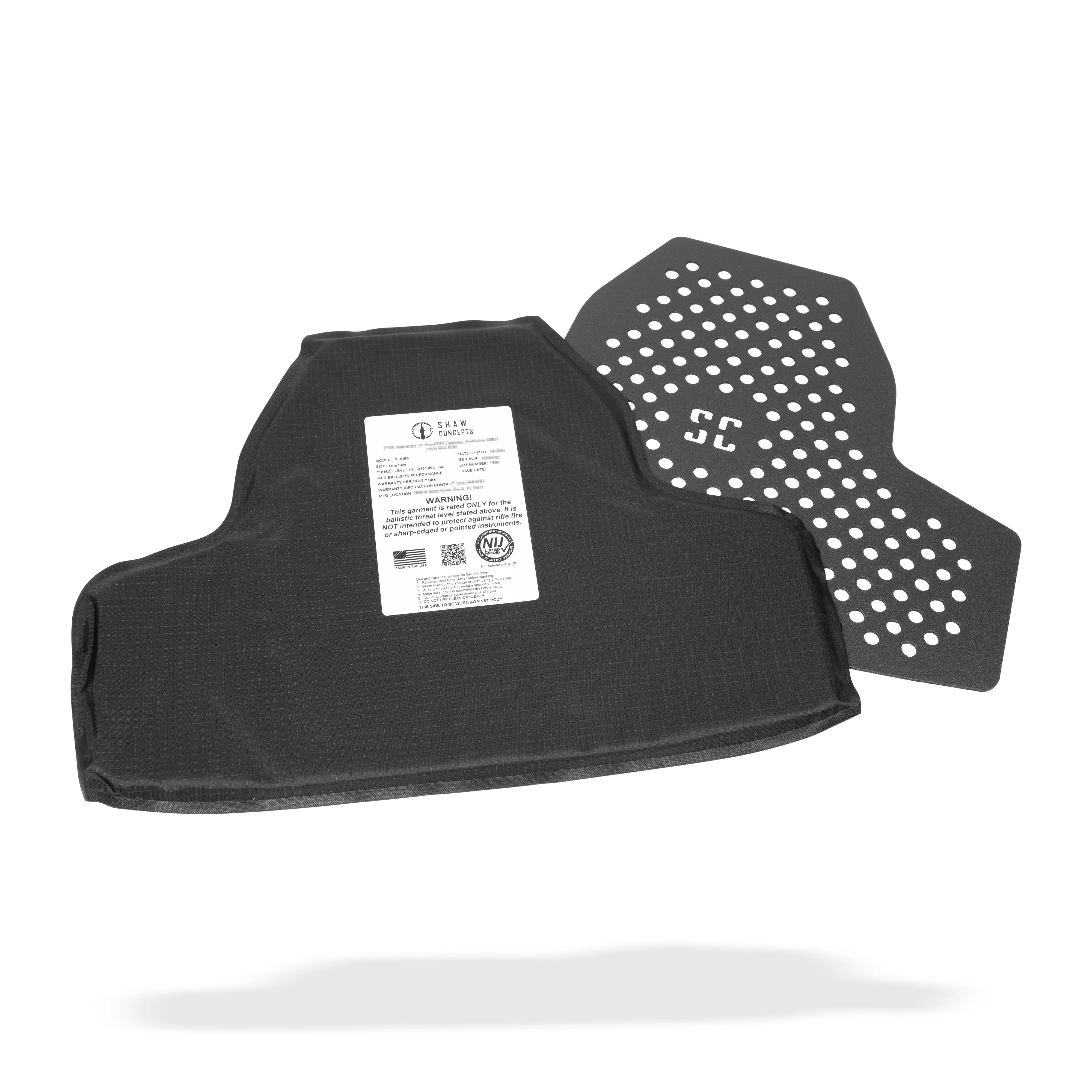 The ARC UpArmor Upgrade Kit is a set of identical soft armor panels that quickly and easily attach to the inner side of the ARC Carrier V2's Plate Bags. The panels feature a MOLLE/PALS mounting area on the wings for attaching pouches that will flank the sides of the plate bag. Additional holes are cut into the MOLLE panel to allow items such as Knife Sheaths to be lashed on. This is a Level IIIA Soft Armor Insert.